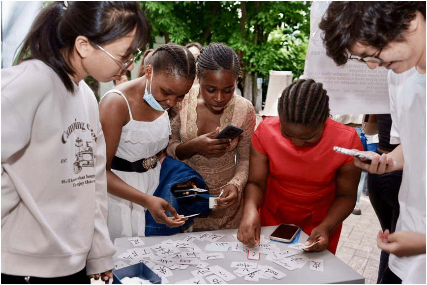 活动现场,“刘伯温”中文趣味挑战赛人气爆棚。“汉字拼拼乐”考验留学生们对汉字的书写能力,他们专注书写,在一笔一划间感受汉字结构之美;“成语接龙”中,中外学生携手组队,共同品味成语的独特内涵;“方言模仿秀”充满欢乐,留学生们努力模仿温州方言,虽然发音带着别样趣味,但满是对本地文化的好奇。“中文歌曲卡拉OK”里,悠扬歌声传递着他们对中文的热爱;“快问快答”环节围绕中国文化知识展开抢答,大家在紧张刺激的氛围中拓宽了文化视野。来自喀麦隆的留学生费迪奥兴奋地说:“参加这个挑战赛太有趣啦。以前学习汉语总是觉得有些枯燥,但是在这些游戏里,我能和同学们一起学习、一起玩,汉语真的是一门很有意思的语言,我也更有动力去学好它啦。”
