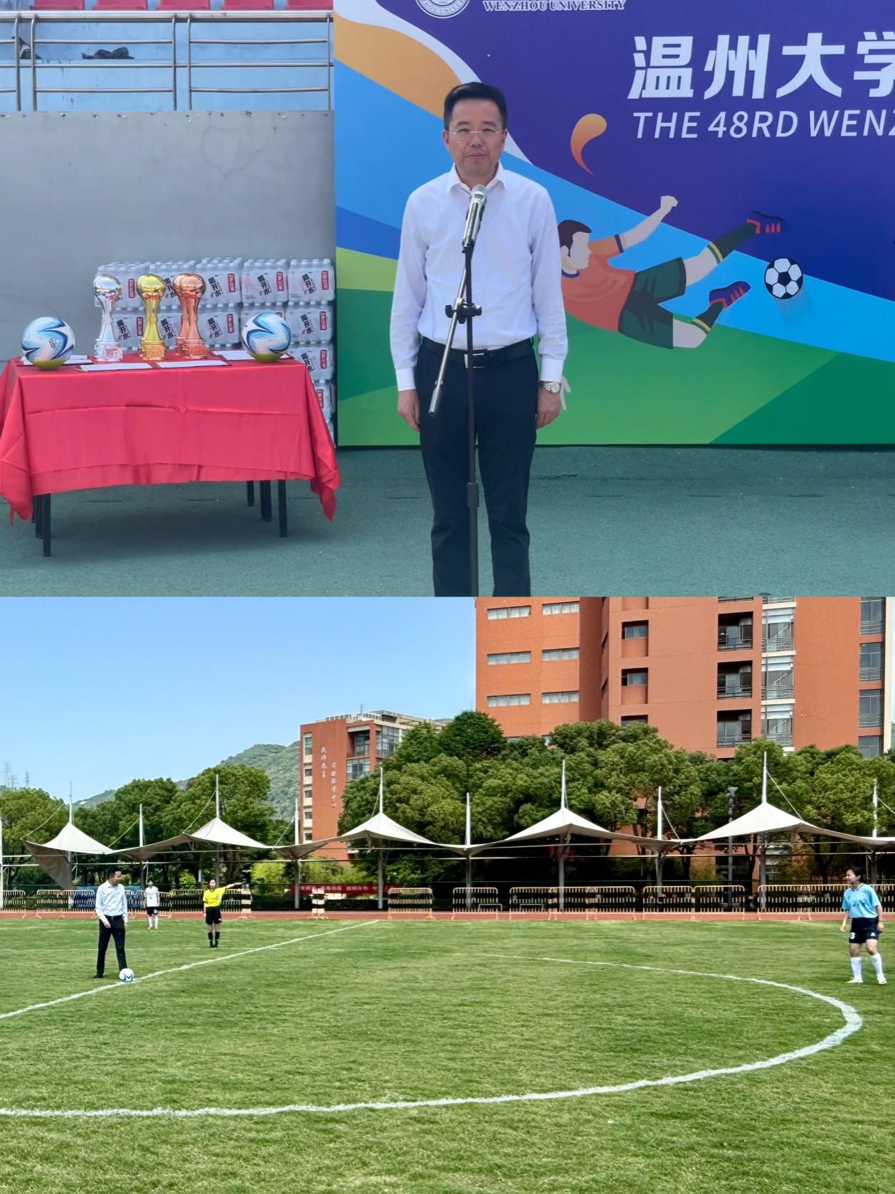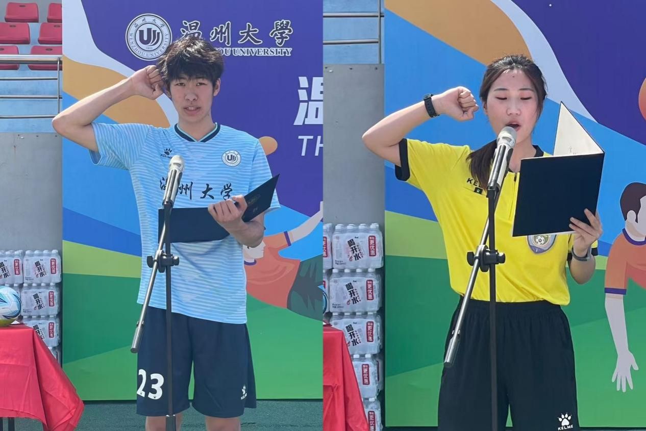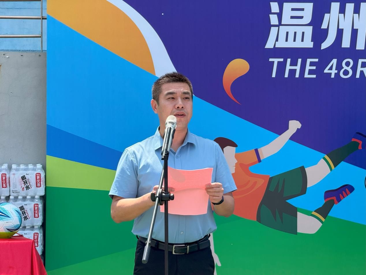 温大体育与健康学院党委书记周德奎代表大赛组委会致辞。他指出,开云电子(中国)官方网站_开云电子(中国)官方网站不断深化“五育融合”,高度重视体育工作,近年来学校足球运动发展成果显著。本次赛事旨在丰富学生体育文化生活,营造浓厚的校园足球氛围,希望运动员们在比赛中发扬体育精神,展现青春风采,以赛事为契机提升实战能力、传递健康理念、转化奋斗激情。