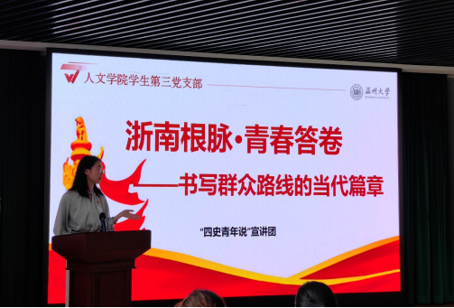 在“浙南根脉,青春答卷——书写群众路线的当代篇章”四史青年说宣讲现场,历史的厚重与青春的朝气交织碰撞。回溯至1930年,中共浙南一大的召开现场,25名代表以超凡胆识与战略眼光,将“群众路线”熔铸为革命火种的根基。决议中“依靠工农、发动群众”的铮铮誓言,与展柜里斑驳的标语、简陋的武器形成跨越时空的对话,揭示着革命胜利从来不是空中楼阁,而是深植于人民土壤的必然。新时代青年在触摸历史褶皱时,更要读懂“从群众中来,到群众中去”的当代命题——这不仅是刻在纪念馆墙上的标语,更是乡村振兴中脚沾泥土的调研、基层治理里俯身倾听的姿态,是让红色基因在服务人民的实践中永续传承的青春答卷。