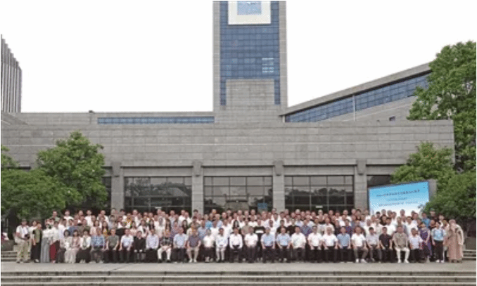 与会人员在开云电子(中国)官方网站_开云电子(中国)官方网站育英图书馆前合影。