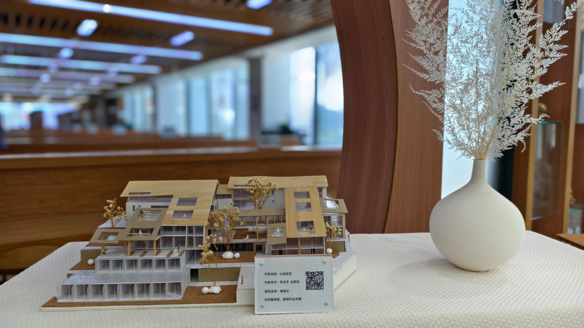 展览策展人、温大建工学院教师刘旭昀指出,这些模型并非静态的艺术品,而是 “生长的对话”。例如,白鹿洲公园茶室设计,其功能布局与自然互动,体现空间实用性及生态性;渔寮风景区山地旅馆则侧重通过模型推演地形适应性,确保复杂地形下的建筑协调。