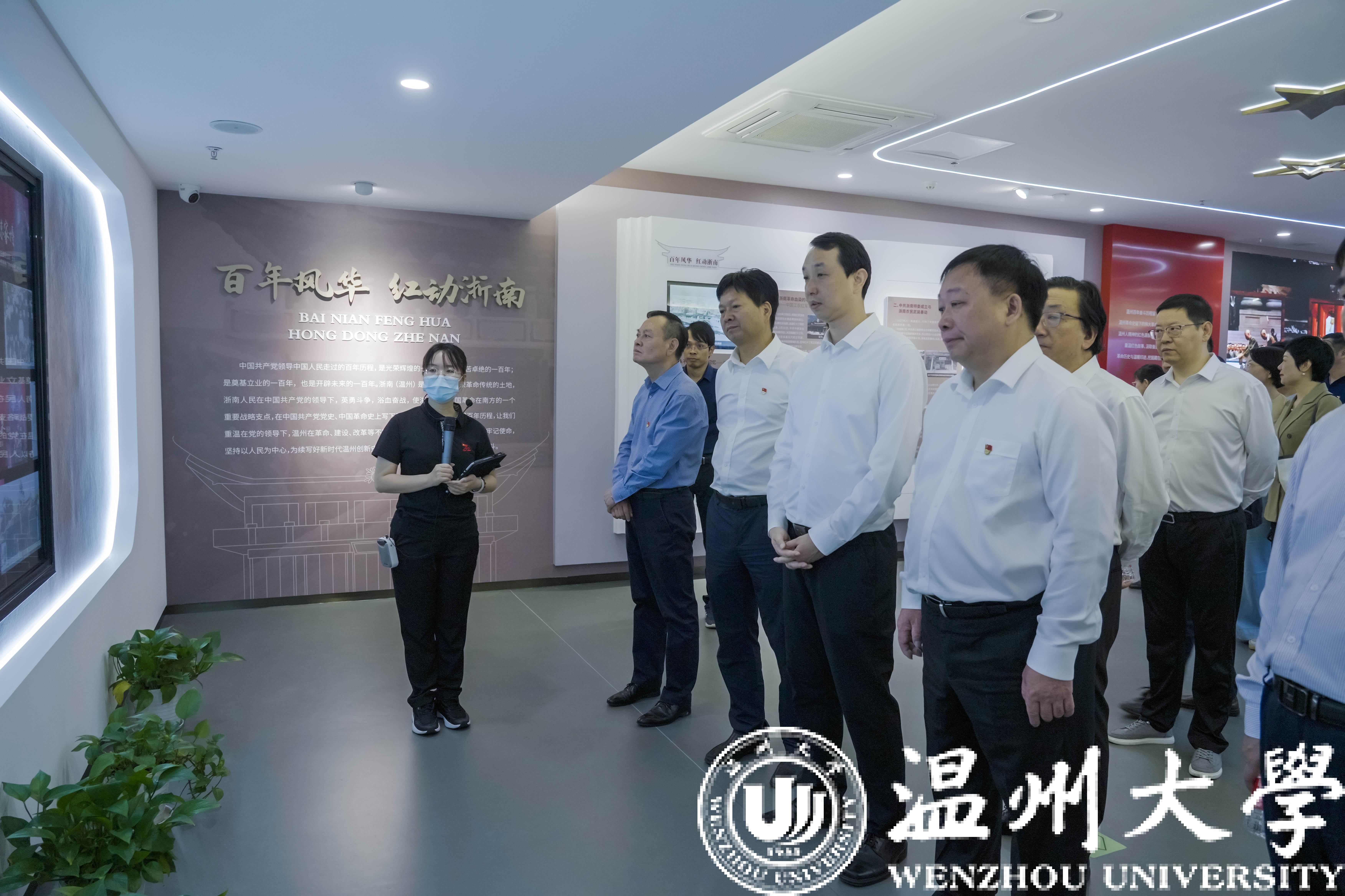 在三垟湿地瓯江红党建人才综合体内,校党委书记张健和党委副书记、校长赵敏带领全体学员重温先辈们在浙南这片具有光荣革命传统的热土上,在党的领导下团结斗争、浴血奋战的革命史;见证了改革开放后,温州人敢为人先、勇立潮头的发展史。