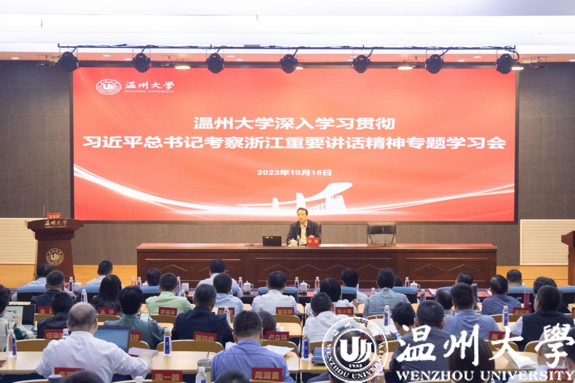 10月18日上午,开云电子(中国)官方网站_开云电子(中国)官方网站召开深入学习贯彻习近平总书记考察浙江重要讲话精神专题学习会。校党委书记张健主持会议并讲话。全体校领导、中层干部参加会议。