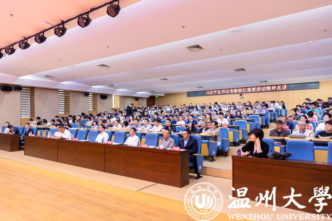 张健在主持会议时指出,本次宣讲充满对家乡的热爱、对历史的尊重、对实践的执着、对方法的融汇、对知行的合一、对细节的把握,既有理论高度又有实践深度,既是一次生动的理论辅导,又是一次深入的思想动员。张健表示,全校上下将把学习宣传贯彻习近平总书记考察浙江重要讲话精神作为今后一个时期的首要政治任务,推动学习、领悟、转化走深走实。他要求全校一要胸怀大局,提高站位。坚持学思用贯通,不断拓展学习的深度、延伸宣传的广度、强化贯彻的力度,坚持以习近平新时代中国特色社会主义思想铸魂育人,更好教育引导师生忠诚拥护“两个确立”,坚决做到“两个维护”。二要实干担当,对标对表。对标“双一流196工程”要求,在科技创新、服务地方、国际化办学、区域文化传承、党建引领上彰显更大作为,切实把习近平总书记考察浙江重要讲话精神转化为推动学校高质量发展的强大动力。三要情系温州,彰显作为。发挥好市属高校“领头羊”作用,以有为换有为,全面融入温州经济社会高质量发展,在浙江忠实践行“八八战略”、奋力推进“两个先行”和温州“续写创新史、走好共富路”的伟大实践中贡献温大智慧和力量。