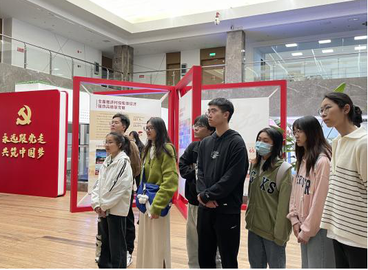 到达三垟湿地后,党员同志首先前往“瓯江红”党建人才综合体。一进入综合体,大家便被头顶的艺术品吸引,通过讲解员的介绍,发现了这个艺术品蕴含着党徽以及“瓯江红”党群服务中心标识。随后,全体党员一同穿过时光长廊,来到党史学习教育馆,大家无一不被数字化的历史照片、文字、红色影像所震撼,这些珍贵资料一一展现在眼前,带领所有人身临其境地重温了那段峥嵘岁月,深刻体会到了共产党百年光辉历程的艰辛曲折和波澜壮阔。