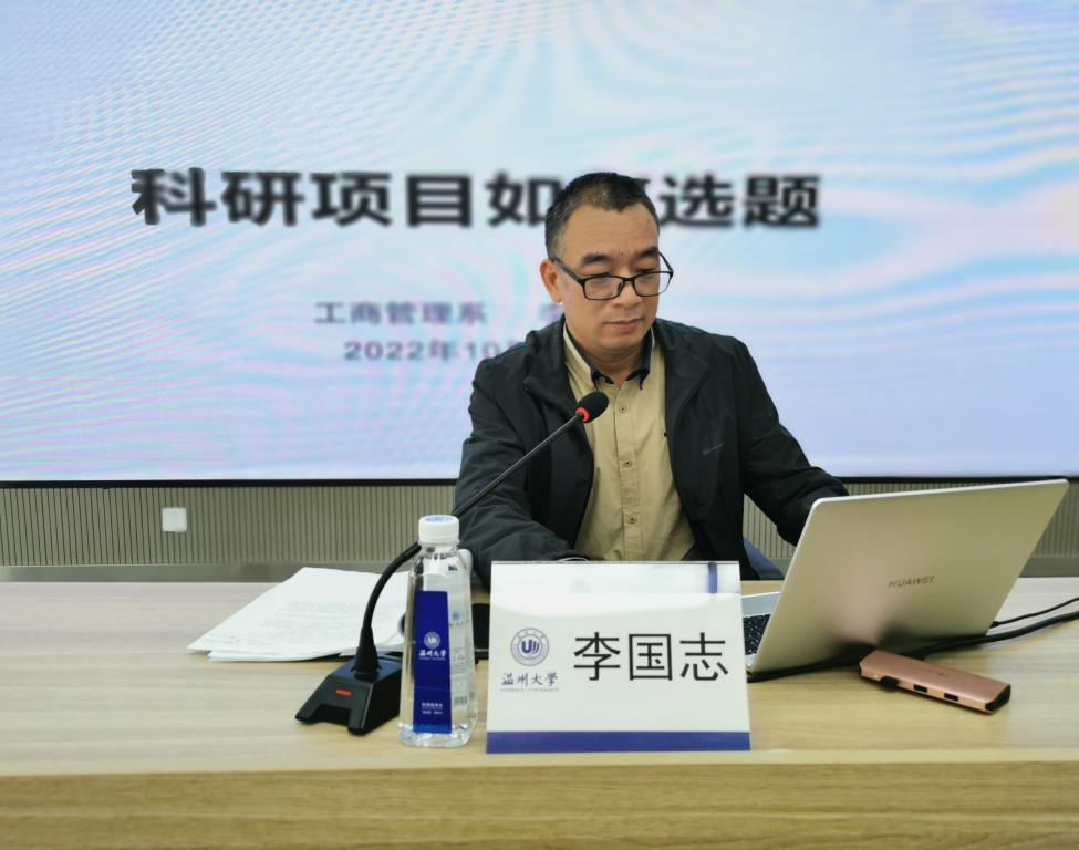 李国志做题为《科研项目如何选题》的报告,他分享了个人科研工作经历,从什么是好的选题、选题的基本思路、确定最终的题目并结合自身的选题和项目为大家讲解如何选题和确定最终的题目,从科研项目申报重要性和青椒成功申报的可能性鼓励大家多报项目,并根据自身经历提出了建议。