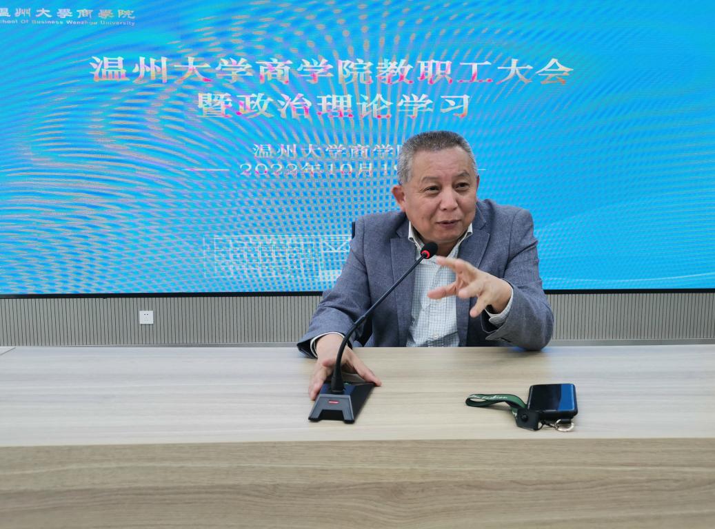 来源: 发布时间:2022-10-20 浏览次数:次2022年10月19日,商学院在商院楼A226仲辉商道讲堂举行献礼90周年校庆系列活动——全院教职工政治理论学习暨商道讲坛第21讲。会议由学院党委书记李密主持。