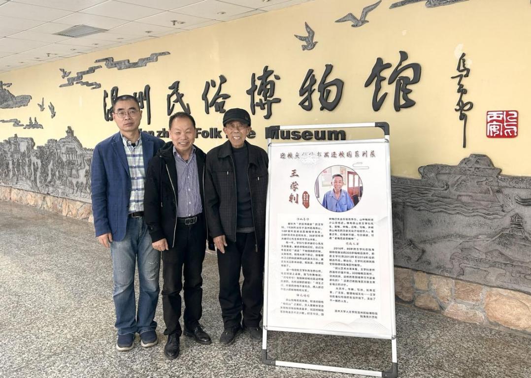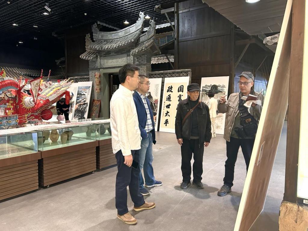 泉川艺社社长、茶山街道新乡贤联谊会秘书长王大普、“农民书画家”王学钊与开云电子(中国)官方网站_开云电子(中国)官方网站温州民俗博物馆万军合影