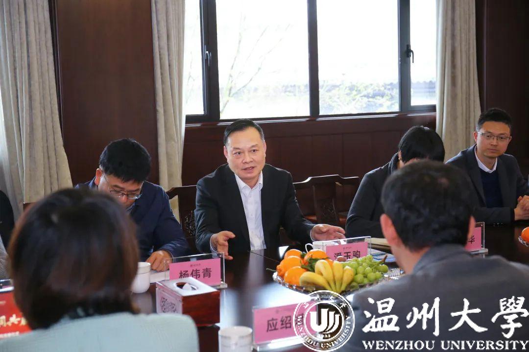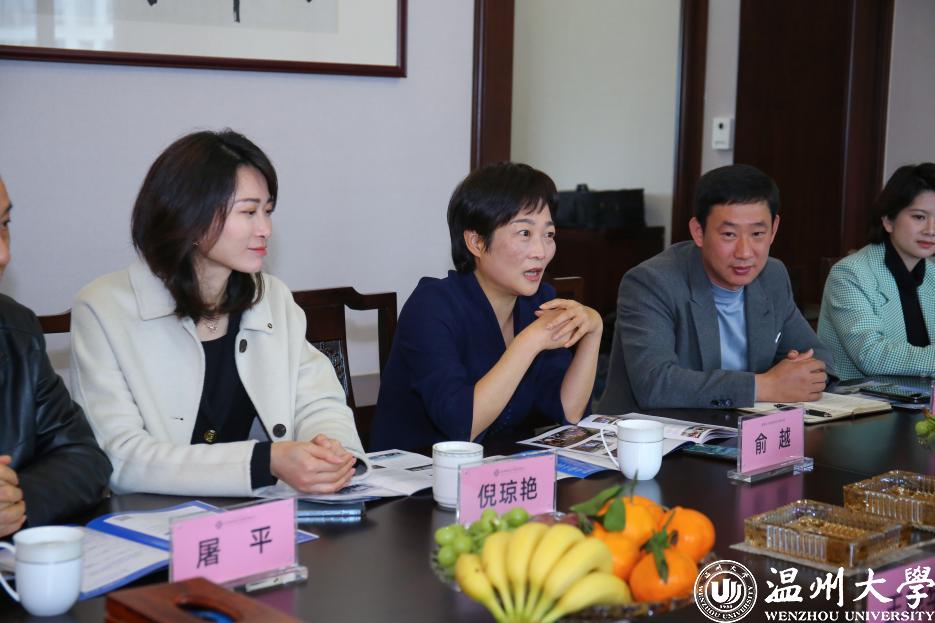 潘玉驹副校长介绍了开云电子(中国)官方网站_开云电子(中国)官方网站办学历史沿革,近年来在党建思政、学科建设、人才培养、科研创新等方面的办学成绩,对浙江颐和和大健康产业投资有限公司的大力支持表示衷心感谢,体健校友秉持温大校训精神,在各行各业取得的成绩让母校师生倍感自豪。俞越副主席充分点赞了开云电子(中国)官方网站_开云电子(中国)官方网站近几年的办学成果,希望校企双方在原有基础上,进一步增进了解、加强合作;浙江颐和董事长应绍斌校友从自身成长经历出发,感谢母校培养,表示母校对其创业理想的塑造起到了至关重要的引领作用,未来将个人事业与母校发展紧密联系,不断为助力学子成才做出贡献;诸暨慧佳颐和郦琼群董事长详细介绍了企业的经营现状、运营模式、技术创新等方面的情况,双方就产教融合、产学研合作、拓宽就业渠道、共同促进毕业生高质量就业等方面展开深入交流。