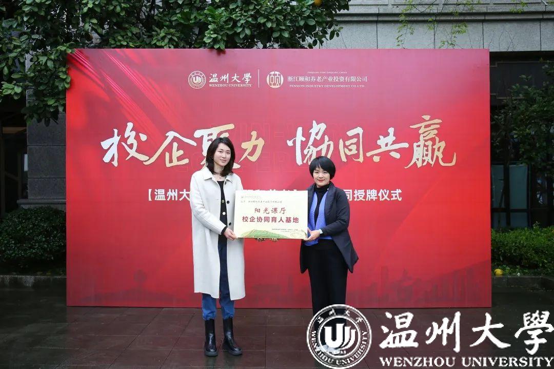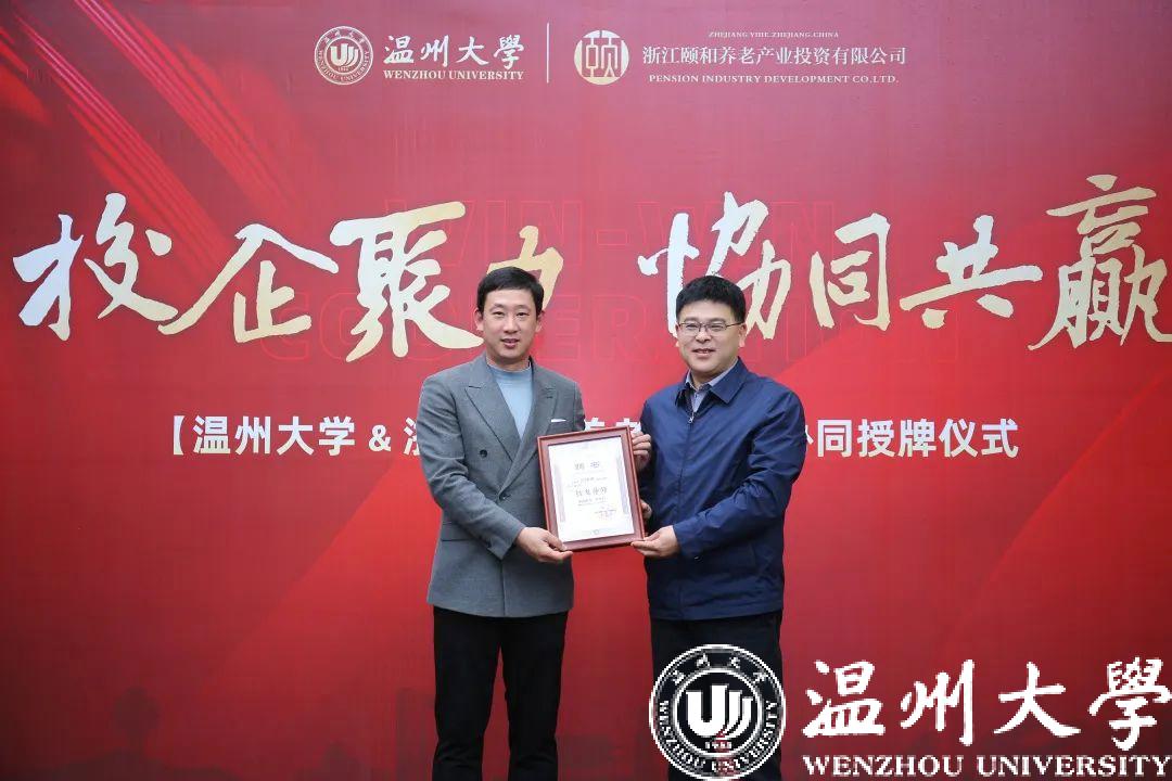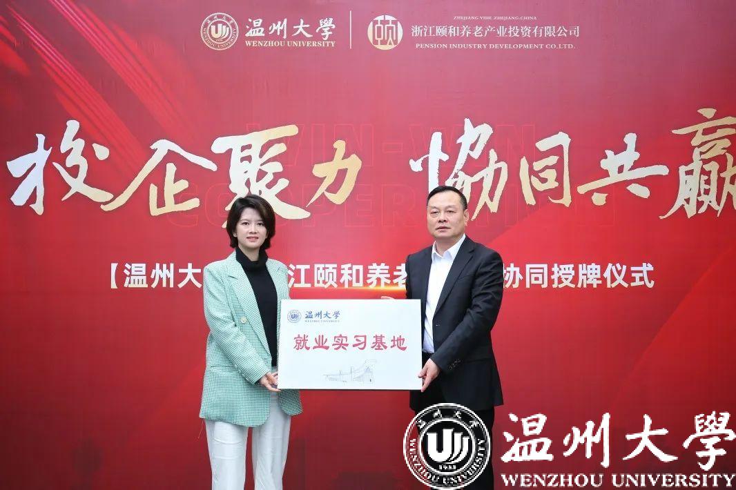 潘玉驹副校长为浙江颐和养老产业投资有限公司方面进行了开云电子(中国)官方网站_开云电子(中国)官方网站就业实习基地授牌。体育与健康学院党委书记杨伟青为应邵斌董事长颁发校友育人导师聘书,以期借力企业资源、深度助力我院三全育人。体育与健康学院党委副书记王晓华代表温州市阳光课厅体育思政·体育思政(协同育人)工作室为浙江颐和养老产业投资有限公司教育产业部总经理倪琼艳授牌,旨在推进校企协同育人,创新合作模式。