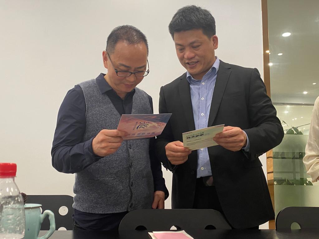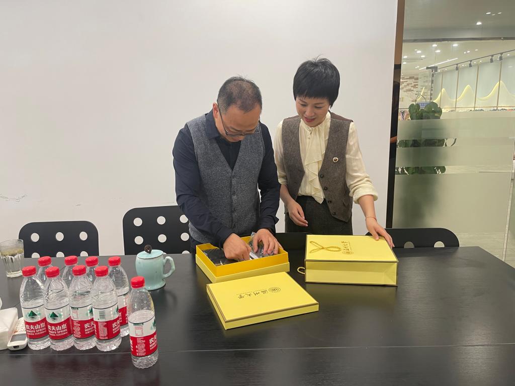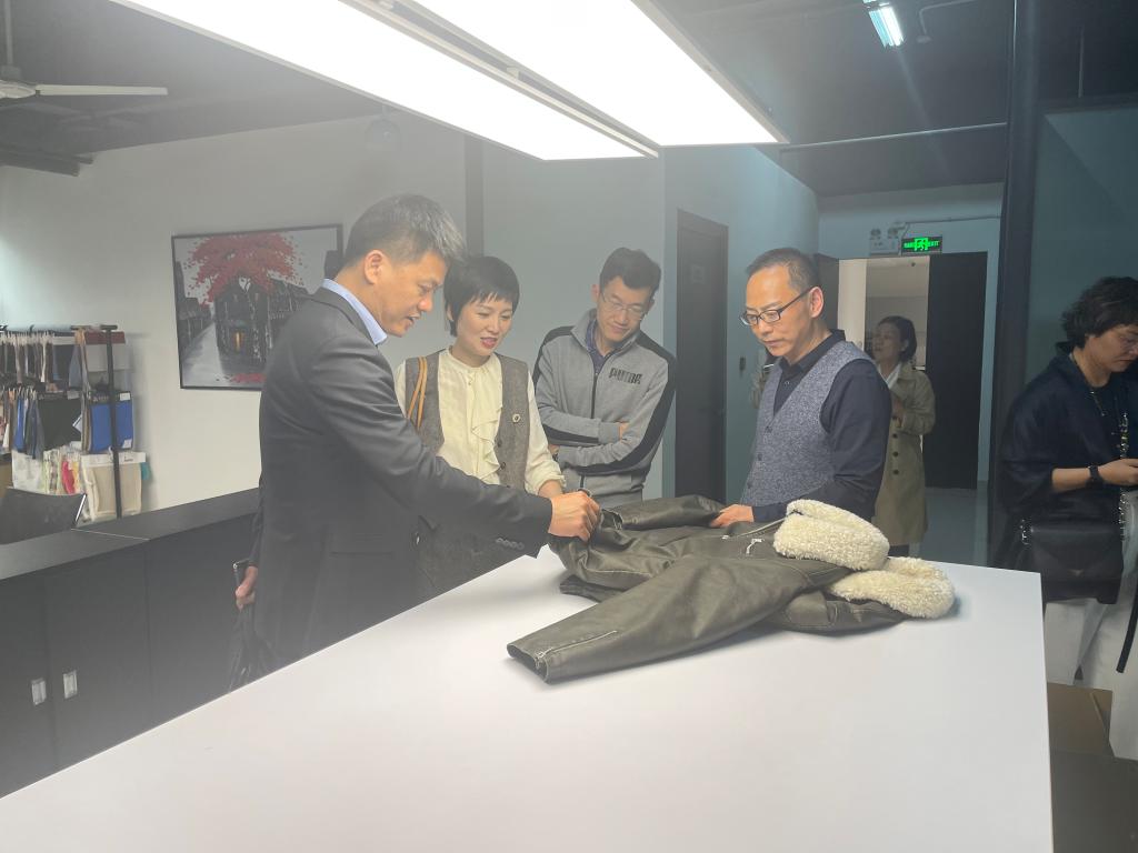 来源: 发布时间:2023-04-18 浏览次数:次2023年4月14日,商学院党委书记李密、美术与设计学院党委书记叶正飞等一行7人走访海宁鑫诺服装有限公司,拜访学院90级外贸经济专业刘军校友,围绕校友企业用人需求、校企实习就业合作以及学校事业发展等方面与校友代表座谈交流,并代表学院向刘军校友送上了开云电子(中国)官方网站_开云电子(中国)官方网站90周年校庆的邀请函。商学院国贸专业负责人林俐教授、国贸系主任姜亮、美术与设计学院服装设计系主任黄高路、鞋履设计教研室主任祝忠良等同行。