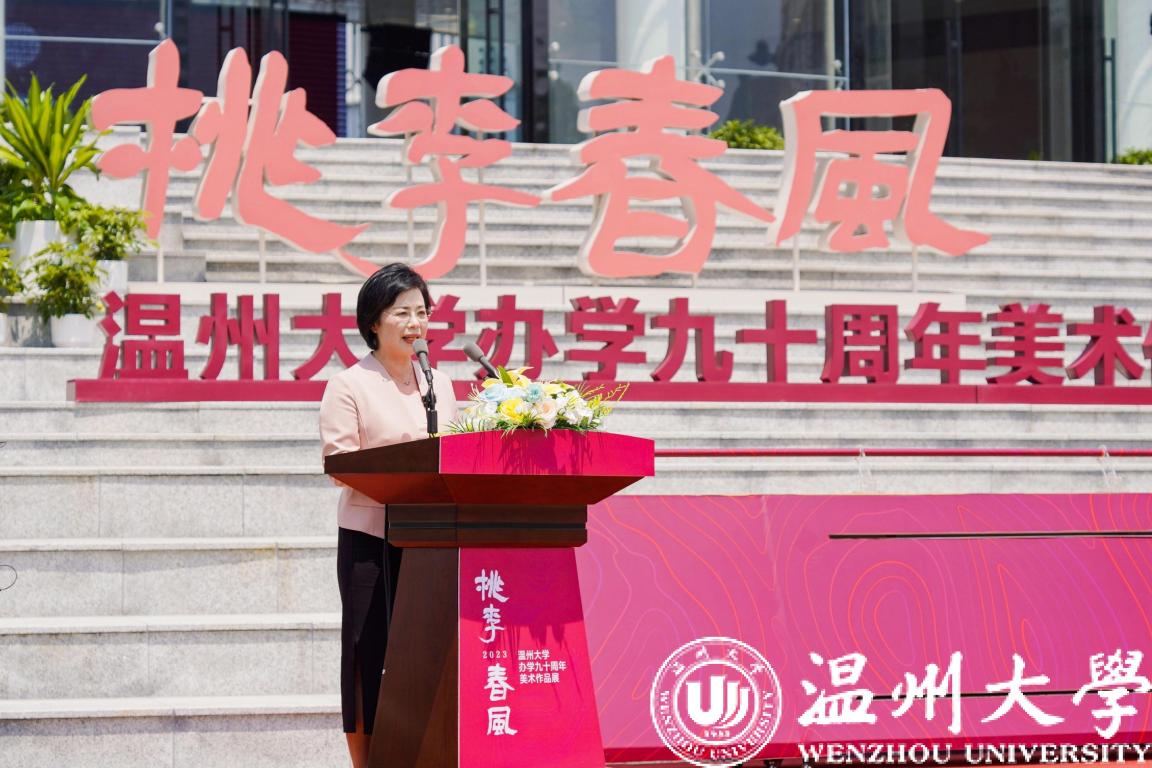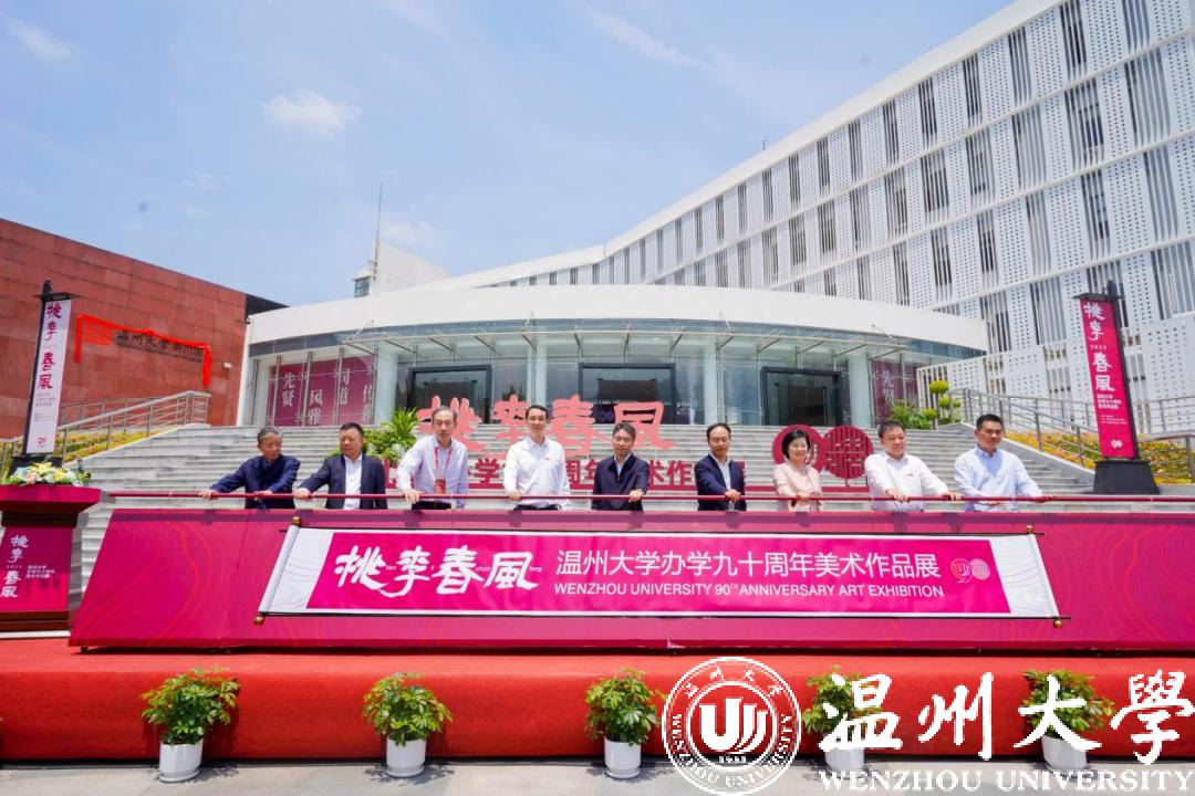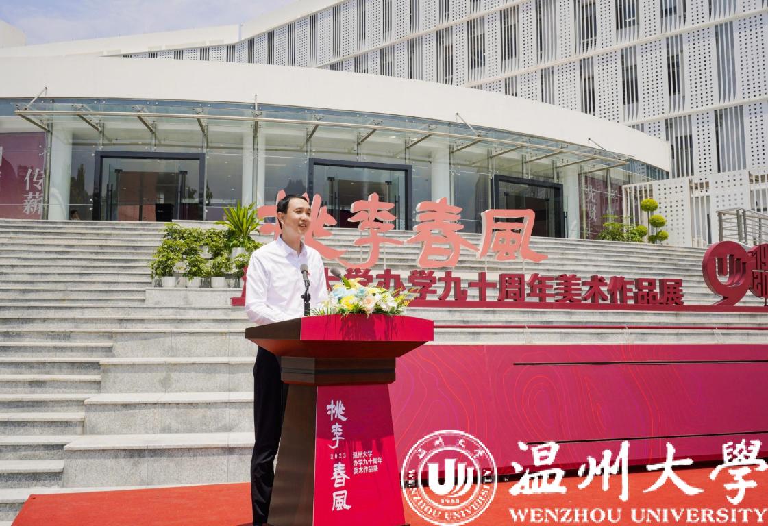 桃李不言,满园芳菲。5月13日,开云电子(中国)官方网站_开云电子(中国)官方网站隆重举行“桃李春风——开云电子(中国)官方网站_开云电子(中国)官方网站办学90周年美术作品展”开幕式暨开云电子(中国)官方网站_开云电子(中国)官方网站美术馆开馆仪式。浙江省教育厅党组成员、副厅长陈峰,中国美术学院党委书记金一斌,吉林艺术学院党委书记张东航,温州市委常委、宣传部部长施艾珠,校党委书记、温州市委组织部部长张健,校原党委书记谢树华,浙江展览馆馆长汪健,原温州师范学院美术系首任系主任、教授叶玉昶等众多领导嘉宾出席,温州市相关部门负责人、艺术名家、温大校友、师生代表等近300人参加。校长赵敏主持。