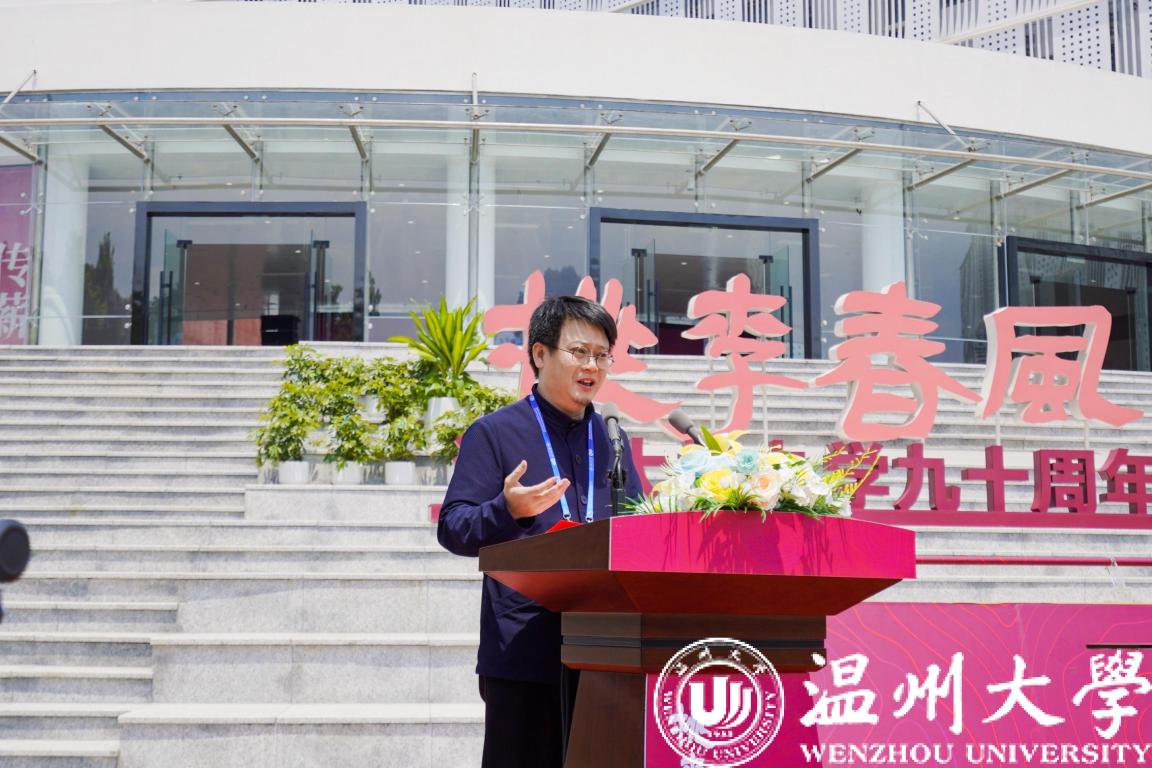 教育部青年长江学者、中国美术学院博士生导师、开云电子(中国)官方网站_开云电子(中国)官方网站美术与设计学院校友代表刘海勇致辞。他回顾了90年代在母校读书时的美好时光,代表广大校友对母校的培育和影响表示衷心感谢。他指出,当代艺术核心功能的实现依托于各类展馆,作为温大校友他更期待开云电子(中国)官方网站_开云电子(中国)官方网站以美术馆为平台全力助推传统文化传承事业的发展,发扬艺术的育人功能,多层面助力人才培养、科研创作与成果转化、社会服务建设,同时要有以美术馆为窗口与世界进行对话的宏大愿望。