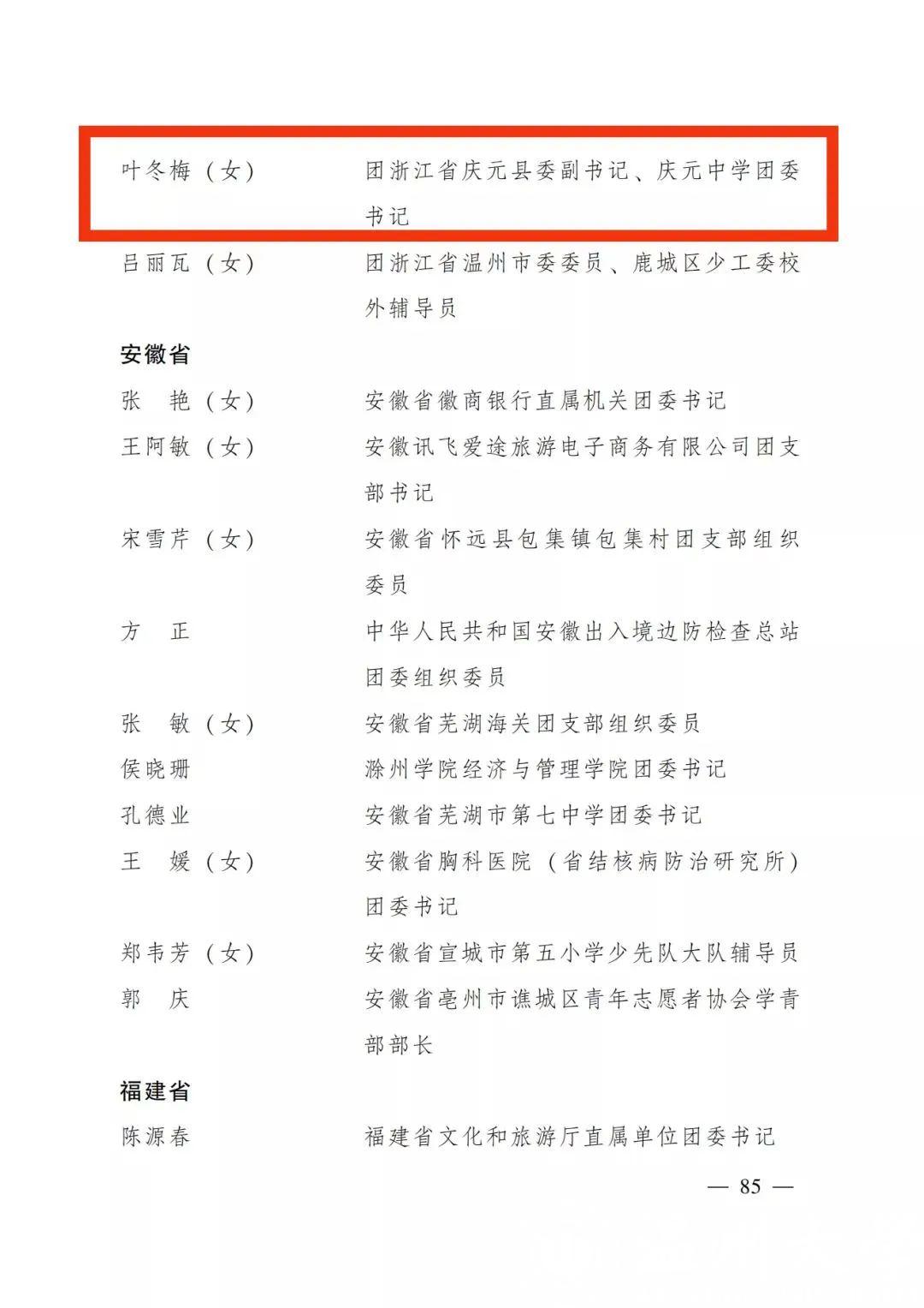 我校10级物理学(师范)专业校友、团庆元县委挂职副书记、庆元中学团委书记叶冬梅被授予“全国优秀共青团干部”。
